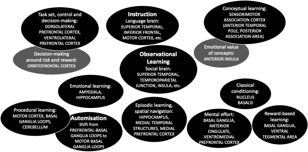 - Here’s a bubble diagram pulling together all the bits of the brain involved in ‘learning’:
